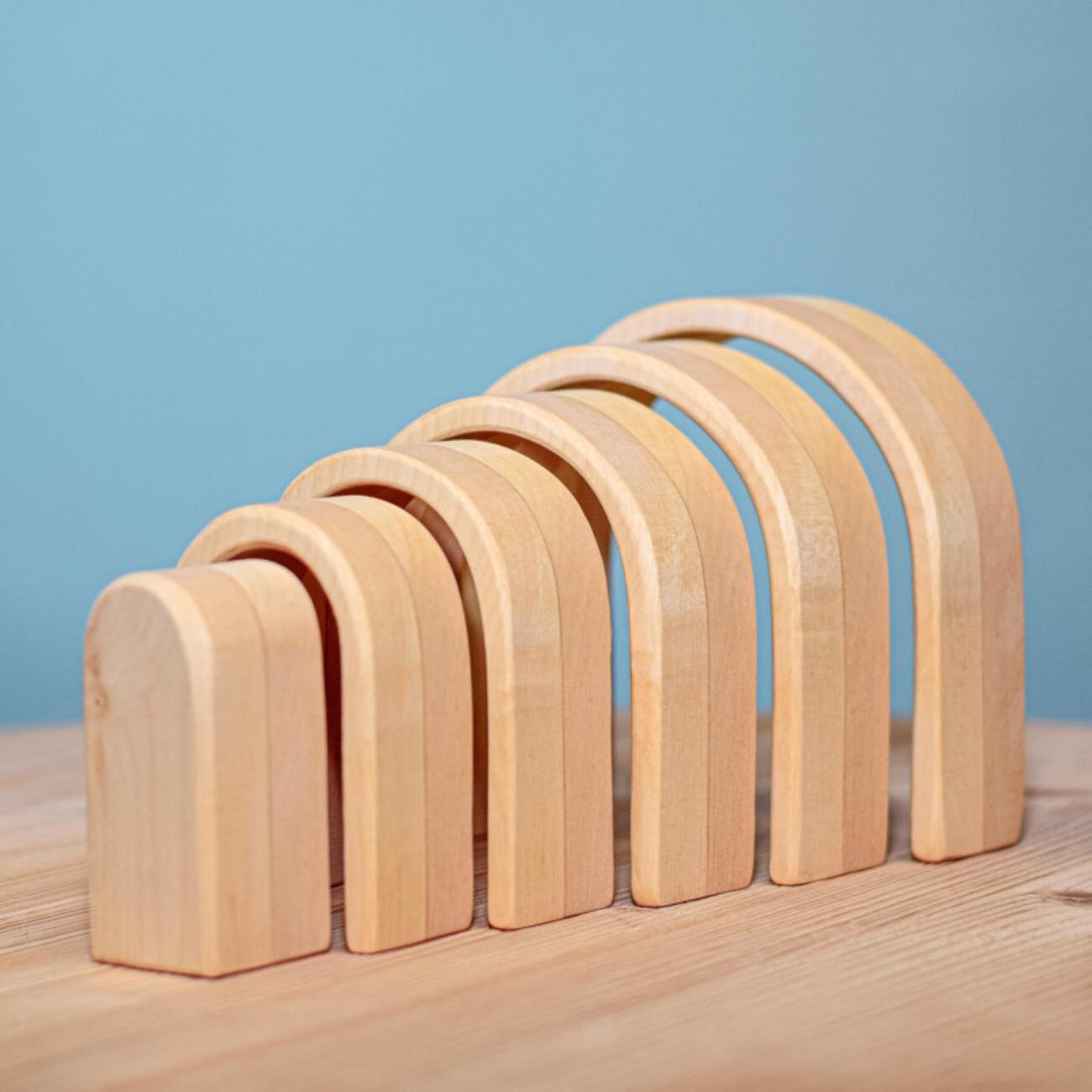 Wir präsentieren das Arches Naked Set von BumbuToys – ein handgefertigtes Holzspielzeug, das die natürliche Schönheit von Holz hervorhebt und endlose Möglichkeiten für kreatives Spielen bietet. Diese unbemalten Bögen sind perfekt für Kinder und Erwachsene gleichermaßen und können gestapelt, verschachtelt oder als Tunnel, Brücken und Skulpturen verwendet werden.